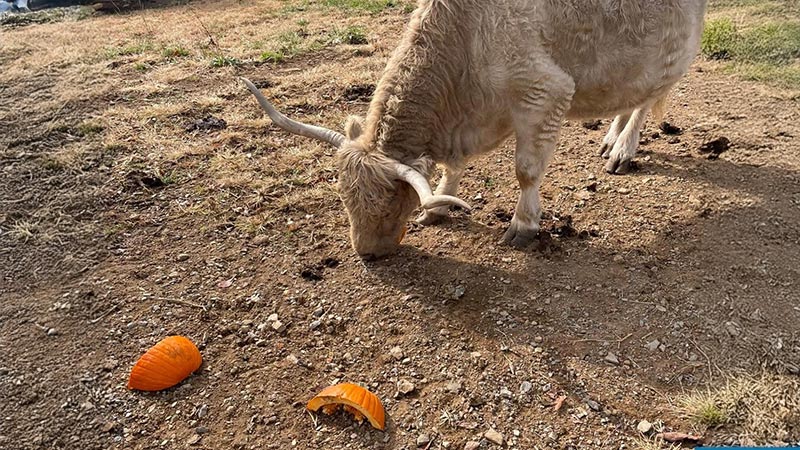 Animals at farms, in zoos and other sanctuaries enjoy pumpkin as a healthy treat. It’s a nutrient dense, low-calorie food, which is also high in fiber and mostly made up of water.