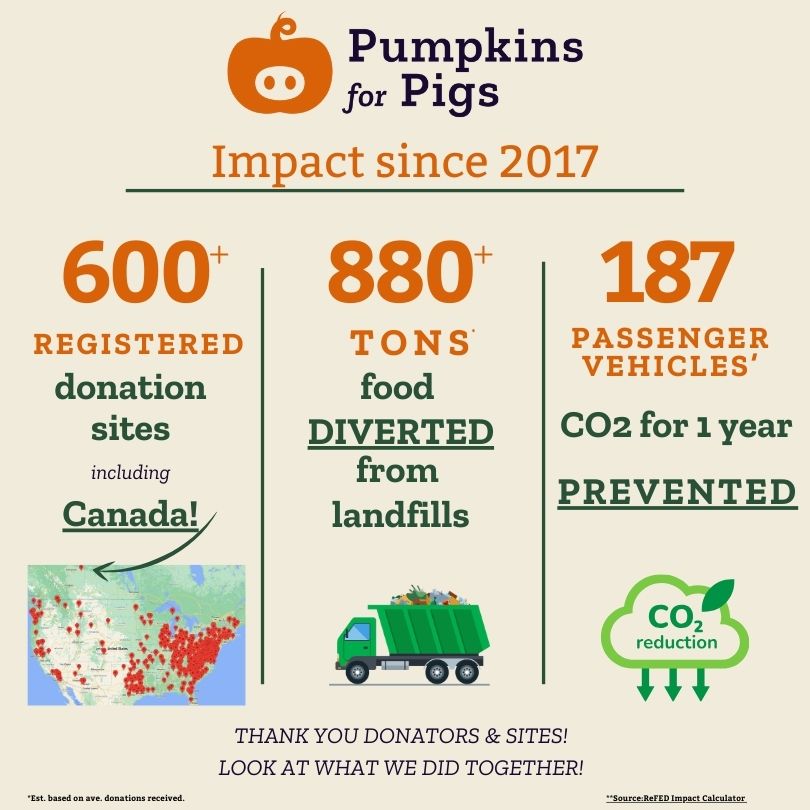 November 1 kicked off the pumpkin donation season. With donation collections across the country throughout November, there are lots of ways to get involved that works with your busy Fall schedule. We hope you are following along with us on Instagram and Facebook to see the actions of your neighbors. New to us this year, we are meeting folks who chose not to buy pumpkins this year. What did you decide?