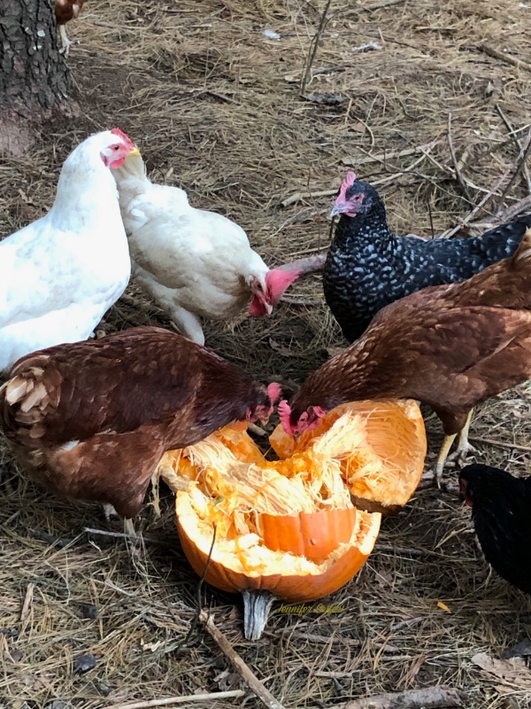 Few know that chickens love pumpkins. Photo: PFP Foundation.